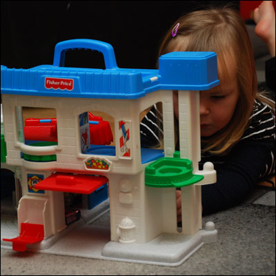 En konsentrert Mia leker med garasjen sin.. Bildet er tatt i helga :)