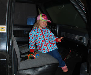 Hun var med til garasjen i går, vi har en chevrolet stående der,